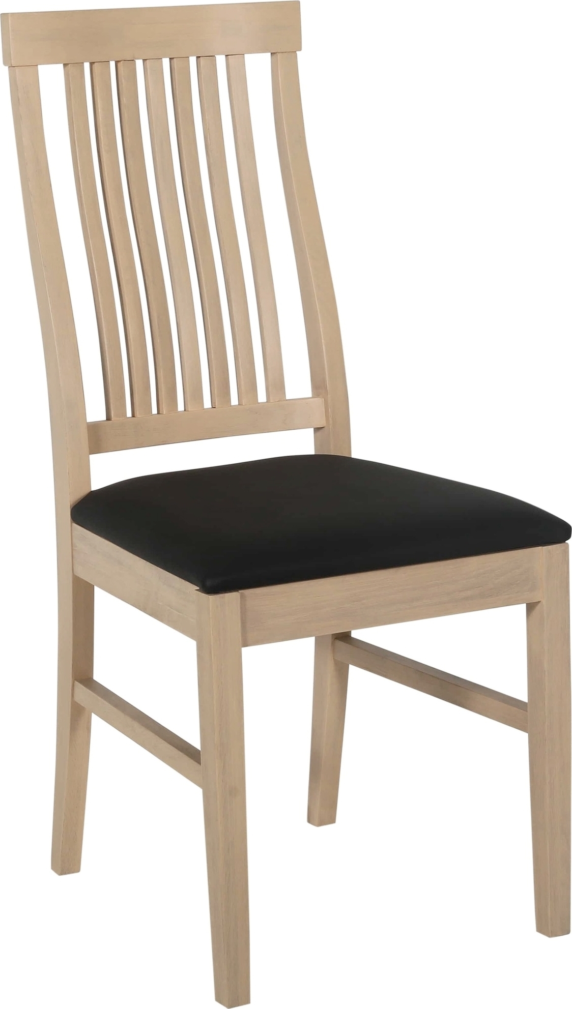 Graniitti ruokatuoli valkoista öljyttyä tammea, musta PU-istuin
