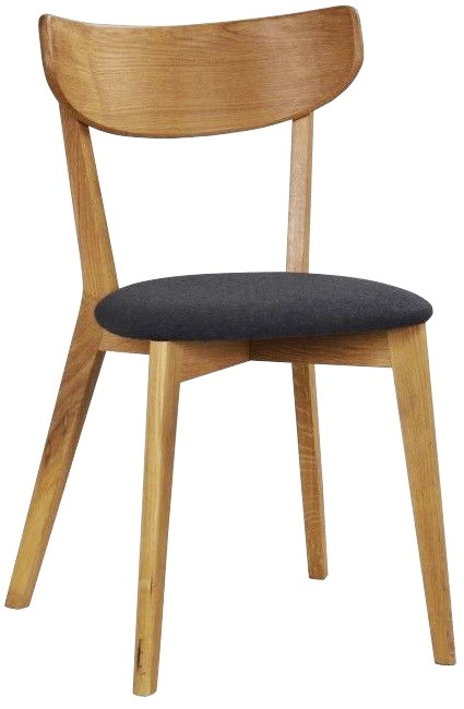 Hannah-tuoli, lakattua tammea ja istuin on verhoiltu harmaalla vilttikankaalla.