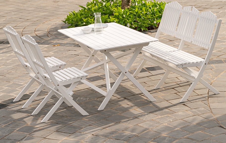 Klassinen valkoinen ruokailuryhmä, joka voidaan käytännössä taittaa, kun ulkosesonki on ohi ja on aika laittaa ulkokalusteet pois. Haväng-ravintolaryhmä on tyyliltään moderni ja sopii useimpiin patioihin.