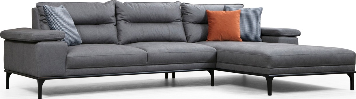 Puu- ja metallisohva polyesteriverhoilulla. Mukana 2 koristetyynyä.