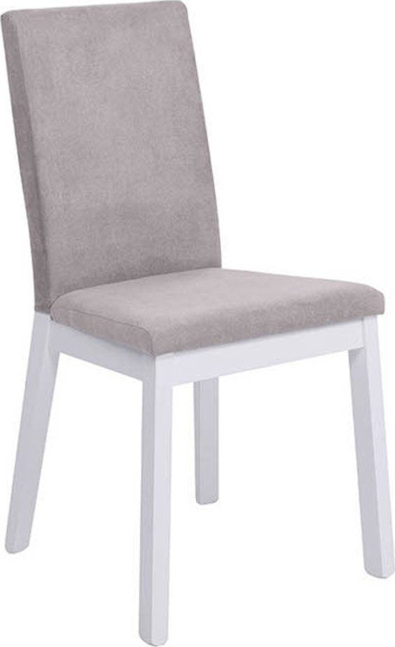 Puinen ruokapöydän tuoli kangasverhoilulla.