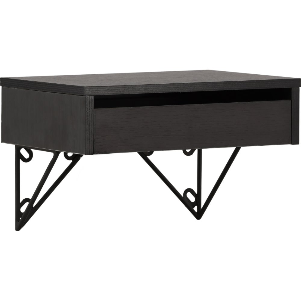 Viehättävä sivupöytä, joka sopii täydellisesti ripustettavaksi seinälle sängyn viereen, sohvalle tai miksi ei eteiseen? Tässä tyylikkäässä mustassa MDF-levyssä olevassa sivupöydässä on musta teräsrunko ja laatikko piilotettua säilytystä varten. Maanläheinen väri ja koristeellinen jousitus antavat sinulle huomiota herättävän sivupöydän.