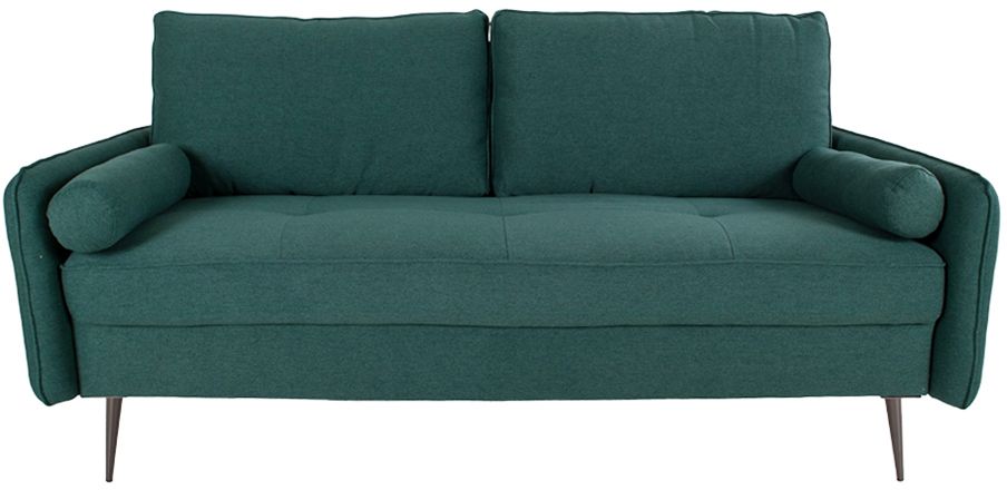Vihreä sohva mustalla metallijalat.