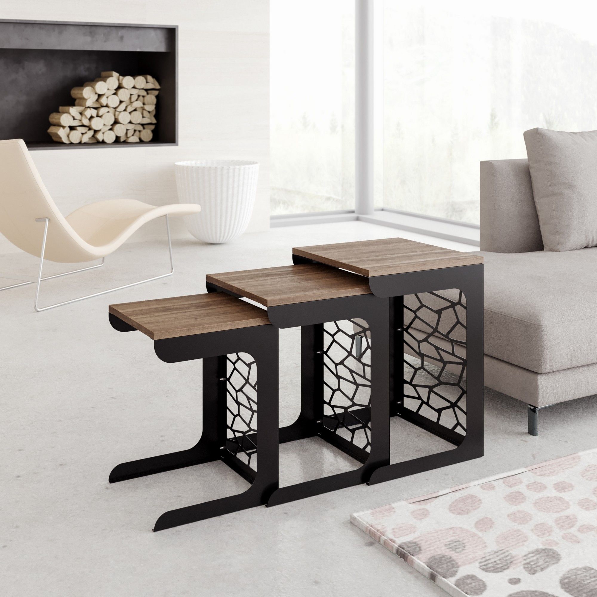 Jänispöytä 45,5 x 51 cm - Musta/pähkinä