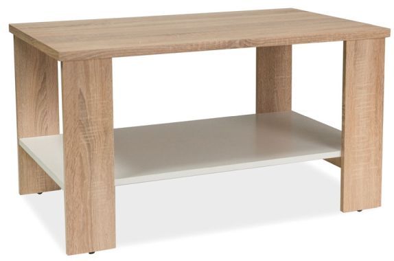 Tyylikkäästi muotoiltu hieno sohvapöytä, joka on valmistettu kokonaan laminoidusta MDF:stä sekä valkoisella että sonoma-tammisella toteutuksella.