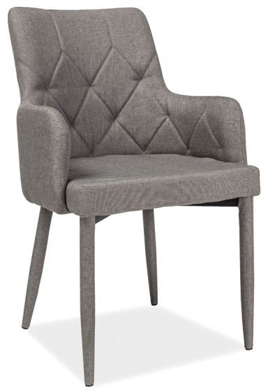 Upea ja moderni ruokatuoli. Runko on valmistettu metallista ja istuin on verhoiltu erittäin pehmeällä kankaalla maksimaalisen mukavuuden takaamiseksi.