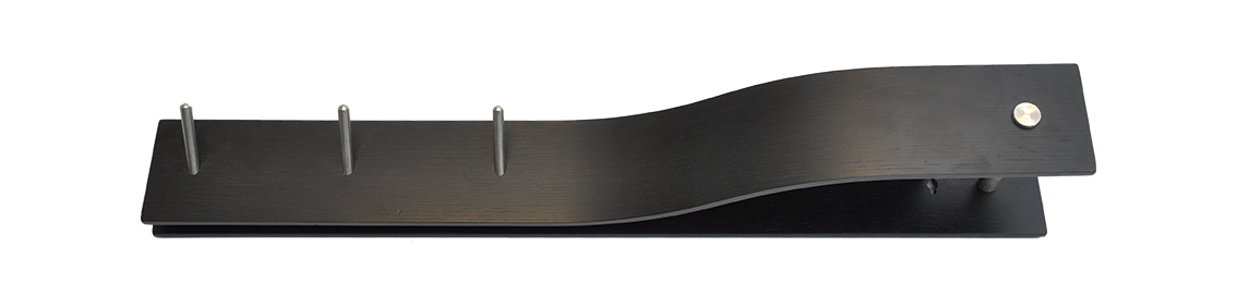 Skånska Möbelhusetin valmistama musta henkari. Joustava ja toimiva muotoilu.