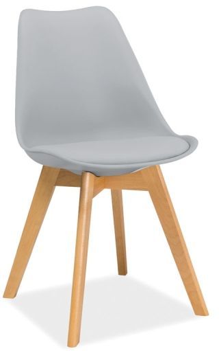 Kaunis ja moderni ruokatuoli. Runko on valmistettu ihanasta puusta ja sillä on kaunis pyökin ulkonäkö, istuin on muovia ja istuintyyny keinonahkaa.