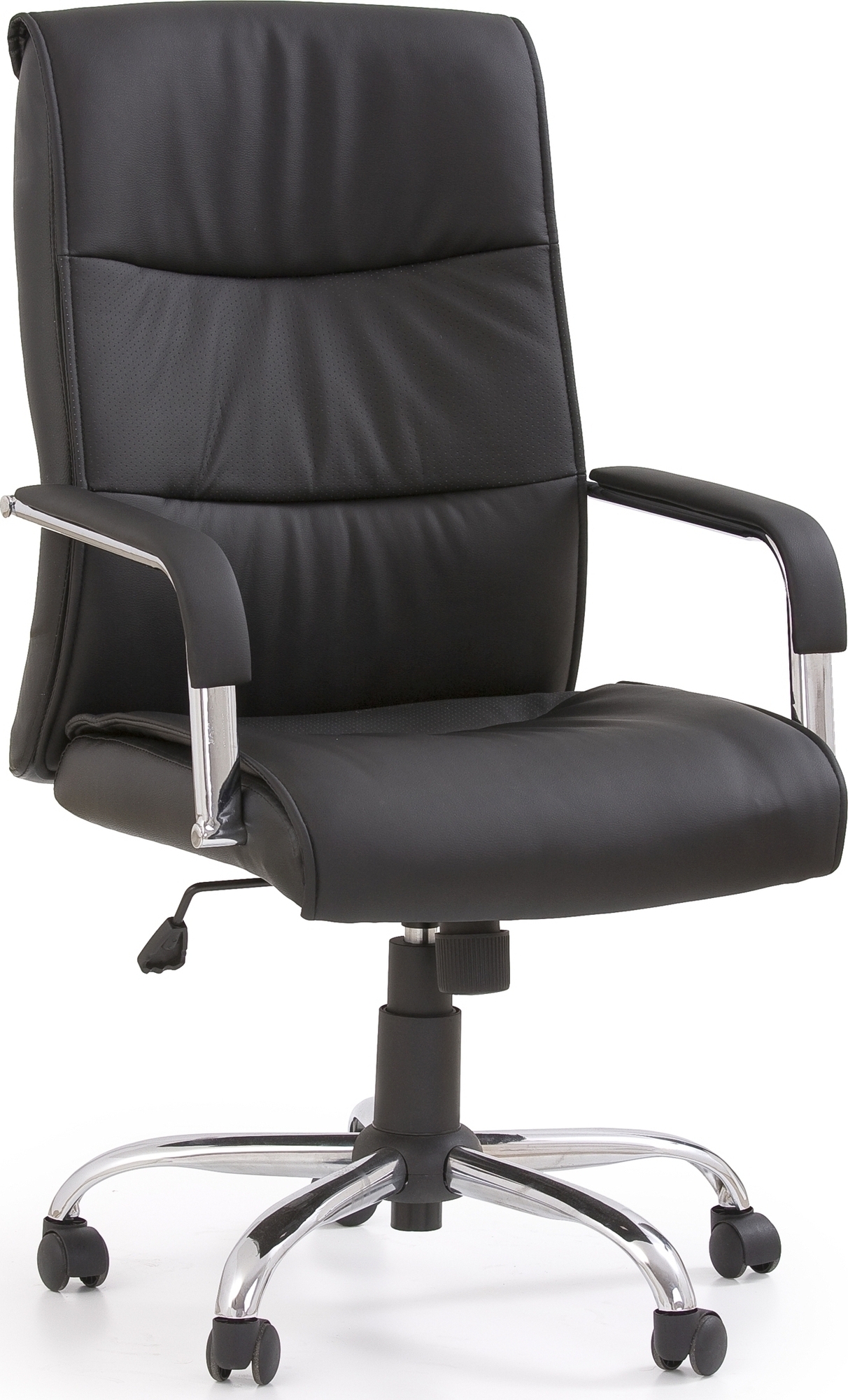 Mukava ja tyylikäs työtuoli. Verhoiltu erittäin miellyttävällä keinonahalla ja yksityiskohdat kromattua metallia. Säädettävä istuimen korkeus ja tuolia on helppo siirtää kromisen tähtijalustan pyörien ansiosta.