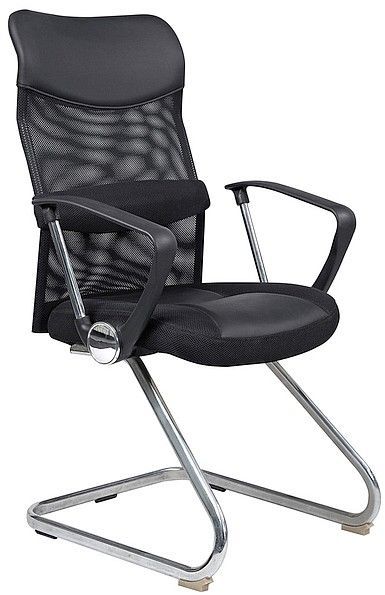 Mukava työtuoli, jossa on moderni muotoilu. Jalusta on kromattua metallia ja istuin on päällystetty kankaan, verkon ja keinonahan sekoituksella.