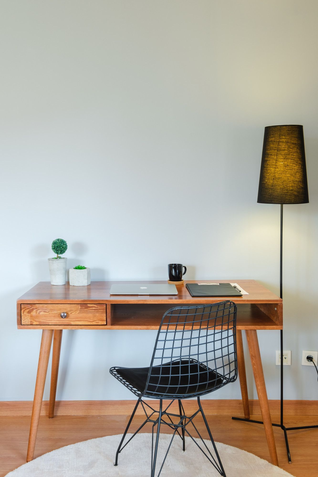 Puinen työpöytä.