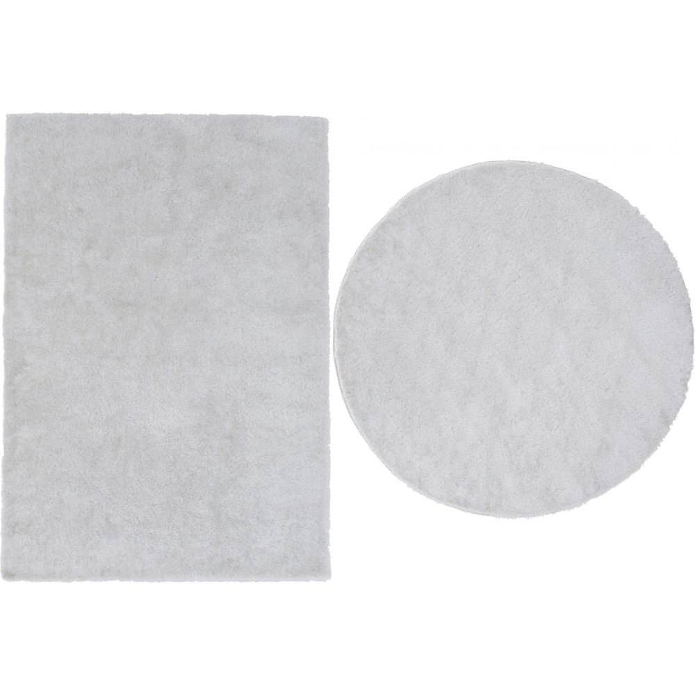 Polyesterimatto valkoisessa sävyssä. Materiaali hohtaa kauniisti korkeassa hapsussa ja vaihtaa kiiltoa riippuen siitä, miten valo osuu siihen.