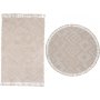Kaunis matto pehmeästä puuvillamateriaalista hapsuilla. Matossa on lineaarinen koristeellinen värillinen kuvio. Klassinen kermanvärinen matto, joka sopii useimpiin koteihin.