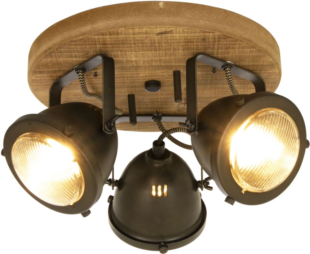 Metallikohdevalaisin raudanharmaalla käsittelyllä ja puisella kattolevyllä. Helppo asentaa kattoon.