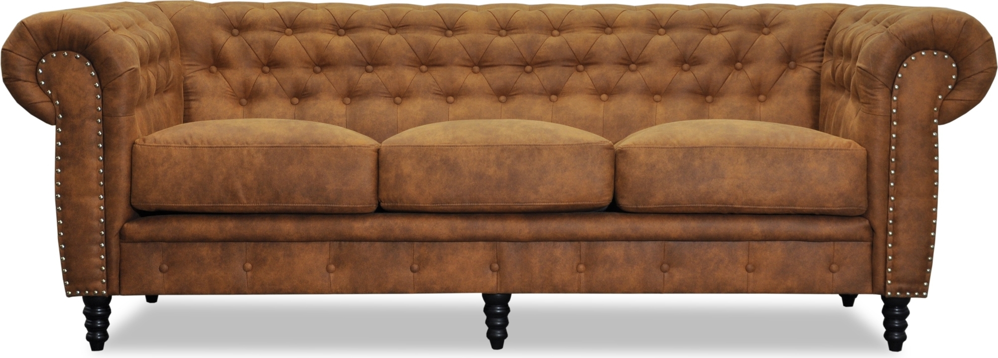 Kolmen istuttava Ashford-sohva, verhoiltu konjakinvärisellä eco-nahkalla, upeaa istumamukavuutta ja hyvää laatua. Pocketspring-jouset istuinosassa takaavat kestävyyden ja mahtavan istumamukavuuden. Chesterfield on klassikko, joka sopii sekä moderniin että klassiseen olohuoneeseen. Mustat sorvatut jalat.