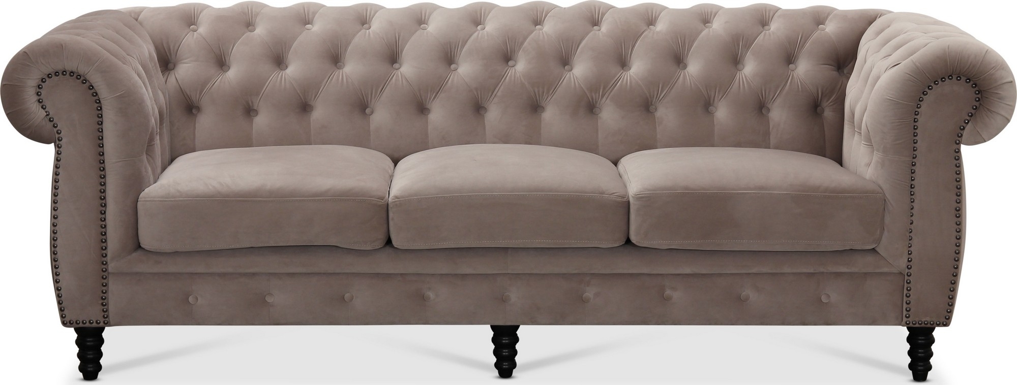 Kolmen istuttava Cambridge Chesterfield - Vaaleanharmaa sametti