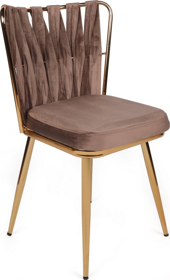 Puinen ruokatuoli samettiverhoilulla ja metallijaloilla.