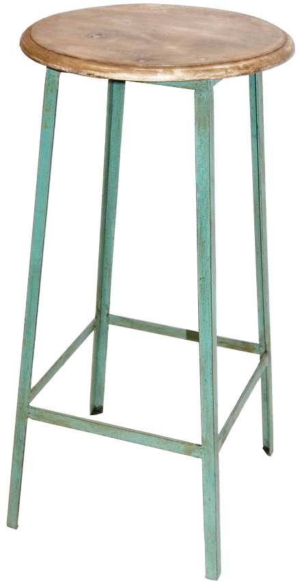 Nätti mutta jykevä baarituoli mintunvihreällä metallirungolla ja puisella istuimella.