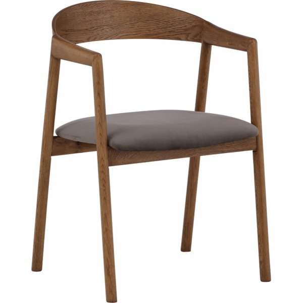 Nojatuoliunelma kaikille muotitietoisille sisustusguruille juuri nyt! Tämä ruokatuoli tekee vaikutuksen skandinaavisella muotoilullaan, tammenvärisellä viimeistelyllään ja pehmeillä pyöreillä muodoilla. Tuolissa on integroidut käsinojat ja hieman levenevät jalat tammista ja harmaa samettikangasistuin, joka antaa pehmeän ja kutsuvan vaikutelman kokonaissuunnitteluun! Yhdistä tyylikkääseen pöytään ja nauti miellyttävistä aterioista modernissa ruokailuryhmässä!