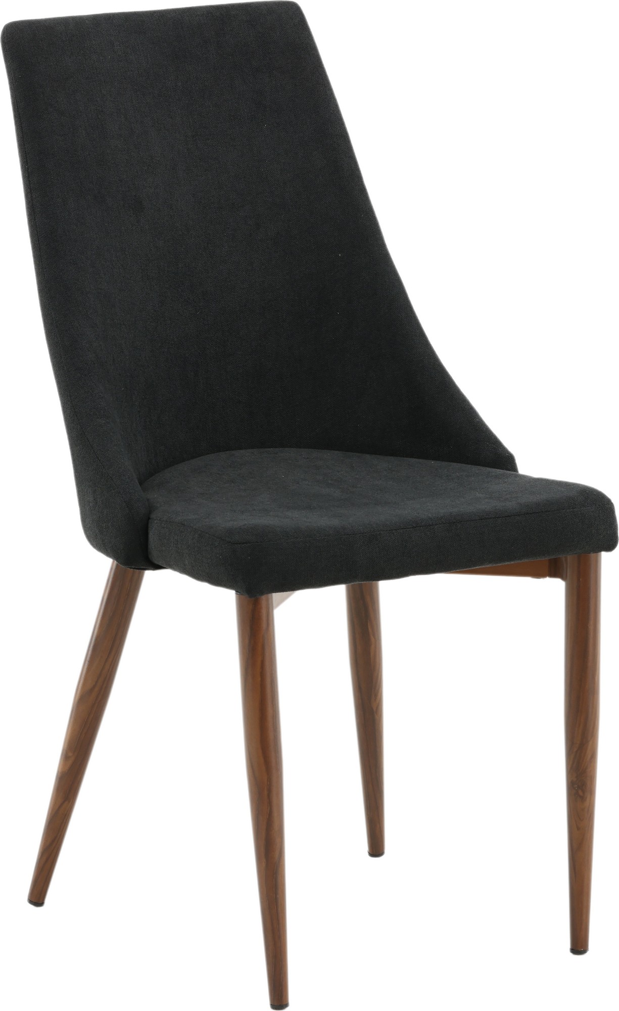Ruokapöydän tuoli valmistettu metallista ja puusta, päällystetty polyesterikankaalla.