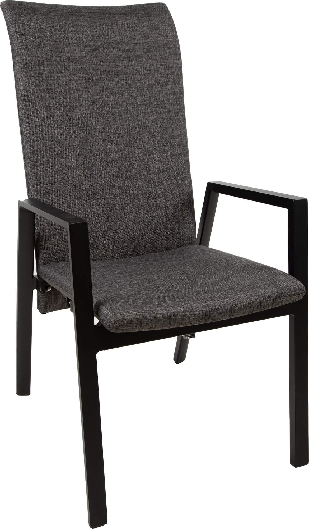 Alumiininen asentotuoli. Päällystetty olefiinilla ja tekstiilillä.