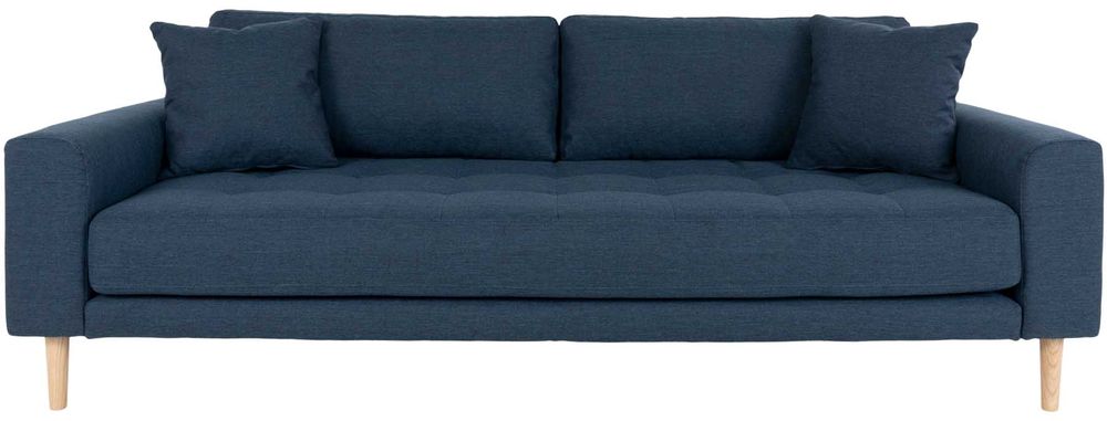 Sohva tummansininen. Mukana kaksi tyynyä.