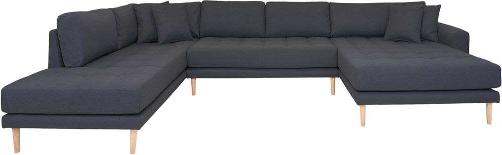 Oikealle päin oleva sohva, tummanharmaa. 4 tyynyä mukana.