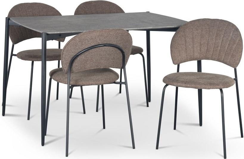 Lokrume ruokailuryhmä 120 cm pöytä betonijäljitelmä + 4 Hogrän ruskeaa tuolia