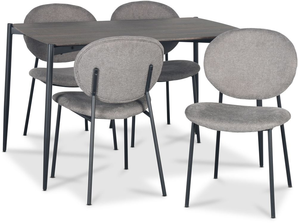 Lokrume ruokailuryhmä 120 cm pöytä tummaa puuta + 4 tuftattua harmaata tuolia