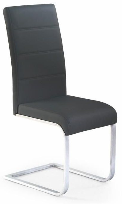 Tyylikäs tuoli modernilla muotoilulla. Pohja on valmistettu kromatusta metallista ja istuin on verhoiltu erittäin mukavalla mustalla tekonahalla maksimaalisen mukavuuden takaamiseksi.