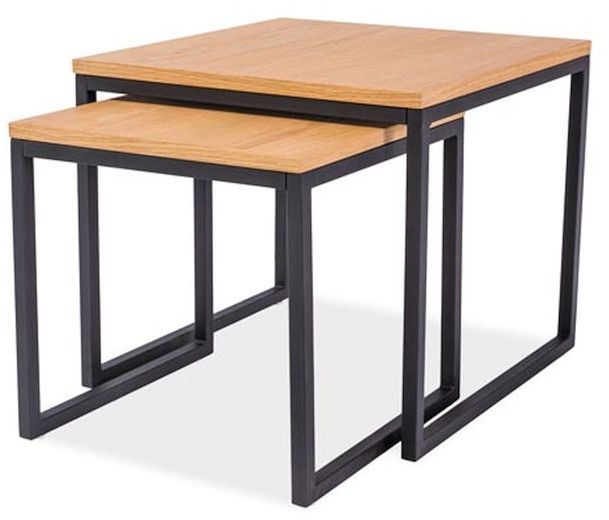 Ihana ja tyylikäs pöytäpari. Runko on valmistettu mustaksi lakatusta metallista ja pöytätaso on MDF:ää, jossa kaunis tammivaneri.