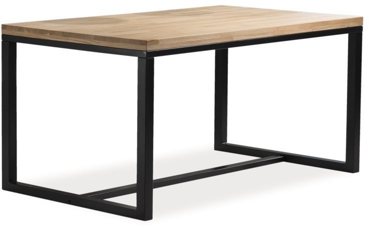Upea ruokapöytä tyylipuhtaalla muotoilulla. Runko on valmistettu mustasta metallista ja pöytälevy MDF:stä upealla tammivanerilla.