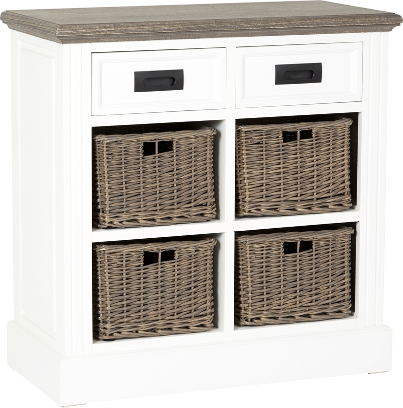 Malou-lipasto säilytystilalla ja rottinkilaatikoilla - Valkoinen / Ruskeanharmaa