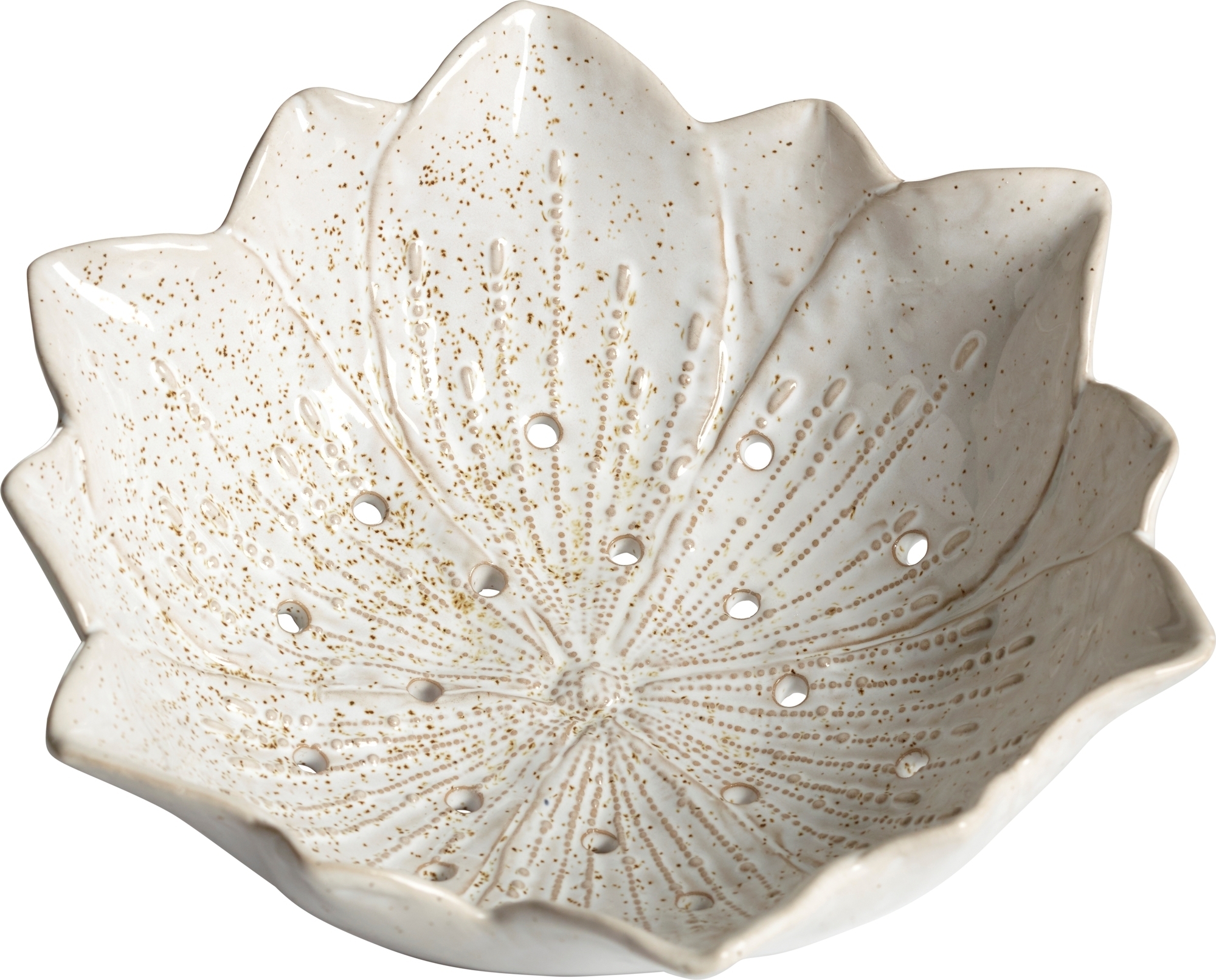 Kermanvärinen kivitavarakulho. Kukkien terälehtien muotoinen. Kaunis laittaa useimmat asiat. On myös toisen muotoinen kulho ja siihen sopiva lautanen.