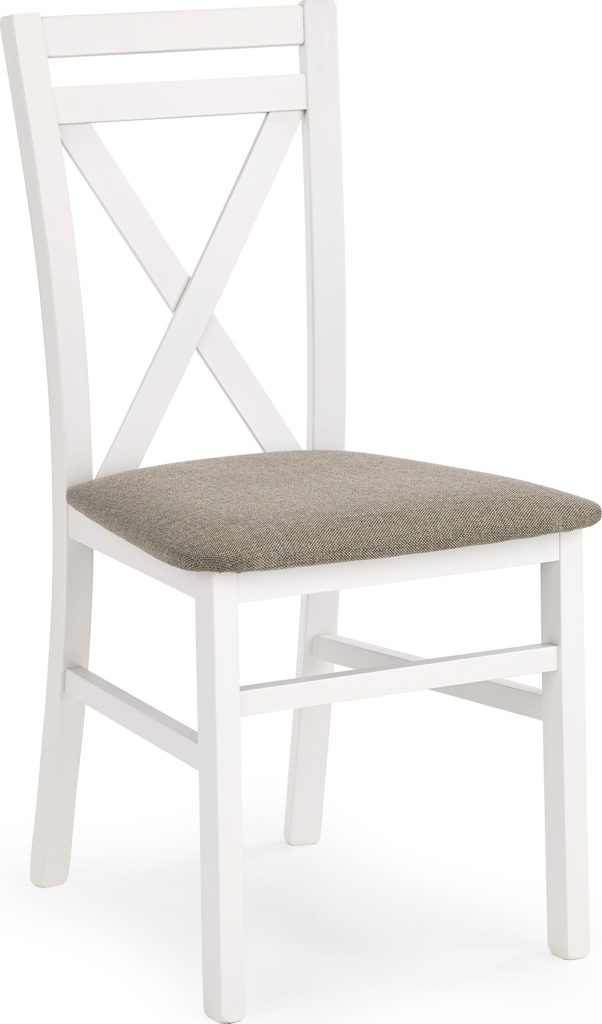 Tyylikäs ruokatuoli klassisella muotoilulla. Valmistettu massiivipuusta ja maalattu kokonaan valkoiseksi. Istuin on verhoiltu kauniilla beigellä.