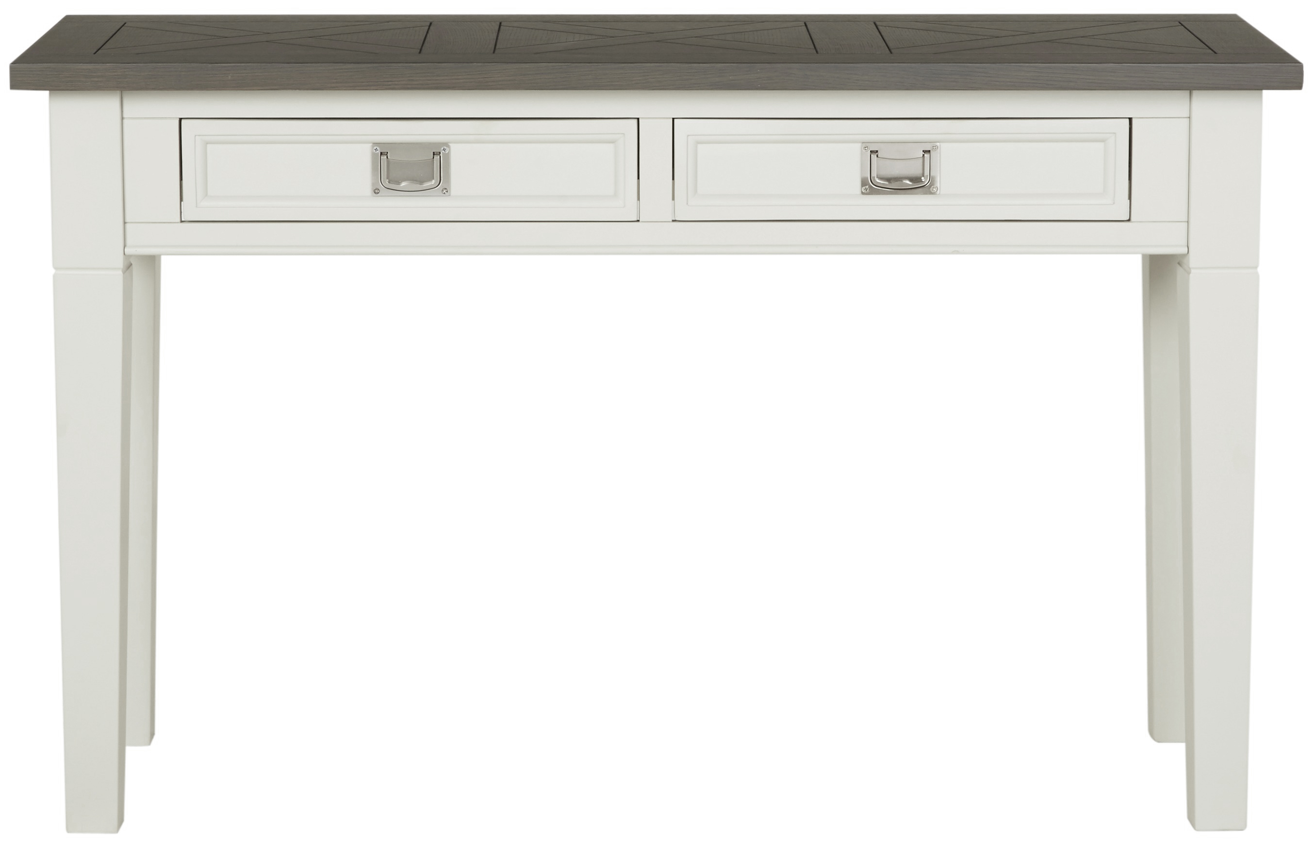 Marstrand on uusi sarja massiivisia ja hyvin työstettyjä kalustetuotteita, joissa on panostettu laatuun ja viimeistelyyn. Runko on lakattu neutraalilla ja upealla vaaleanharmaalla lakalla. Pöytälevyn pintakerros on savupetsattua ja lakattua tammivaneria, jossa on ruutukuvio. Varustettu kahdella metallikahvaisella laatikolla.