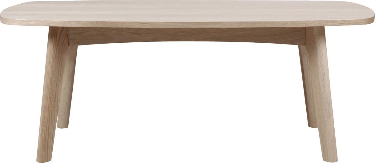 Klassinen sohvapöytä pyöristetyillä kulmilla, valmistettu tammiviilusta, joka on valkopigmentoitu ja öljykäsitelty. Pöytä on osa Marte-sarjaamme.