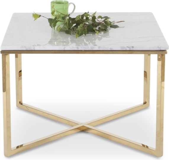 Elegantti marmorinen sohvapöytä, messinkisellä rungolla.