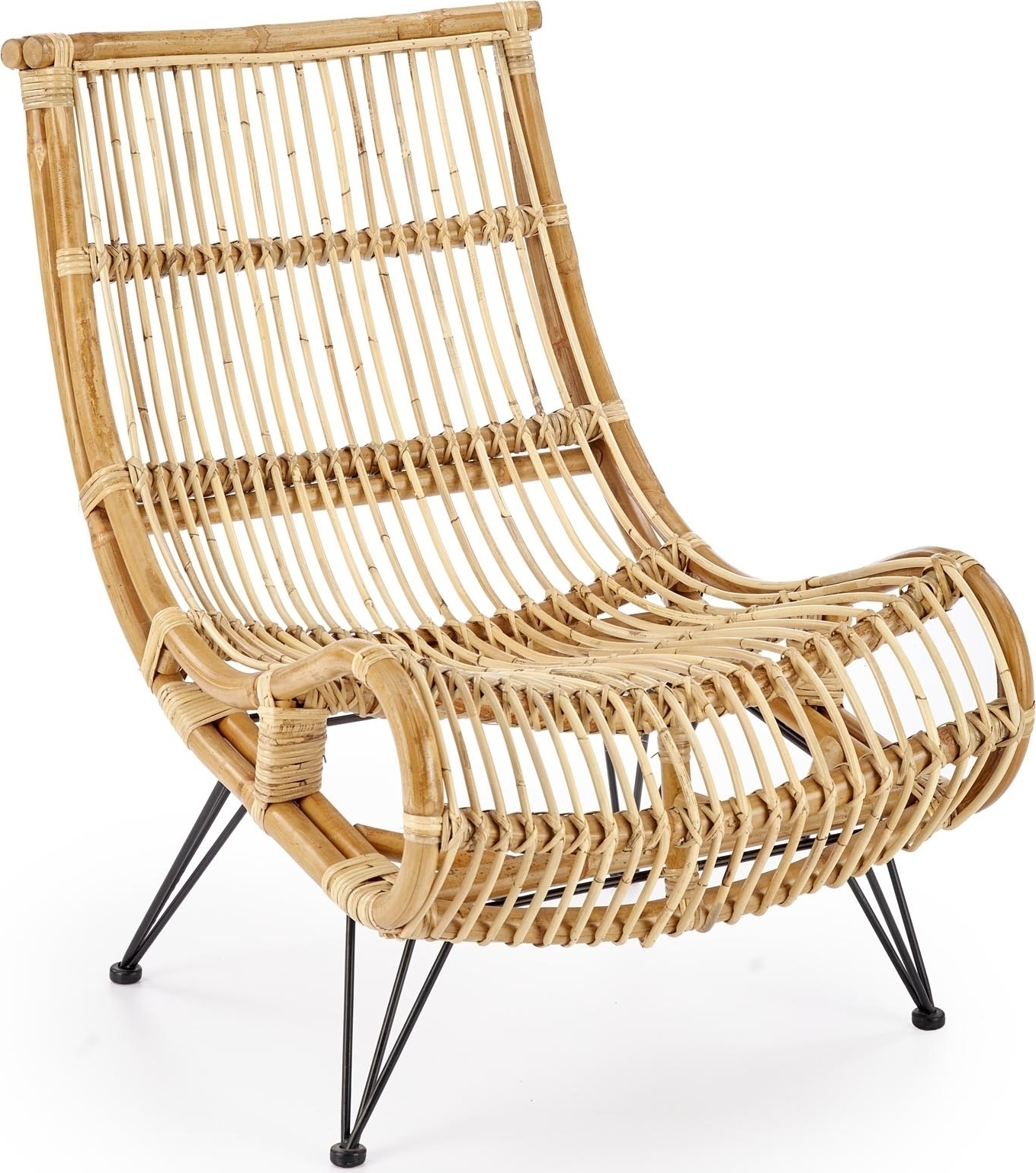 Rottinkinen nojatuoli jauhemaalatulla teräsjalustalla.