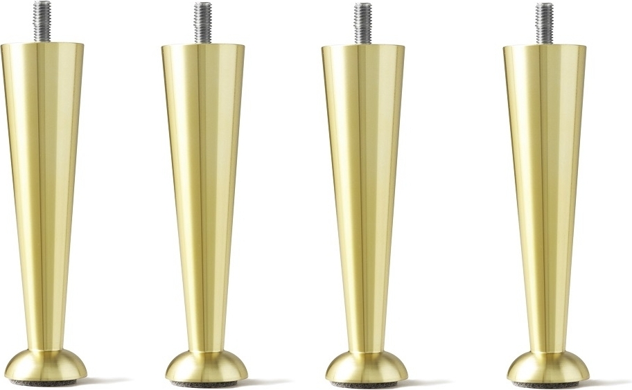Sängynjalat massiivialumiinista ja lakattua messinkiä, paketti sisältää 4 kpl jalkoja. Ainutlaatuiset jalat M8-standardikierteellä, yhteensopivat useimpien markkinoilla olevien sänkymerkkien kanssa.