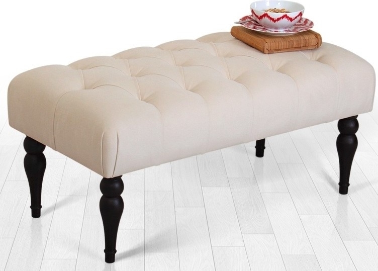 Puinen jakkara. Päällystetty puuvillalla ja sametilla. Pysäytysvaahto.