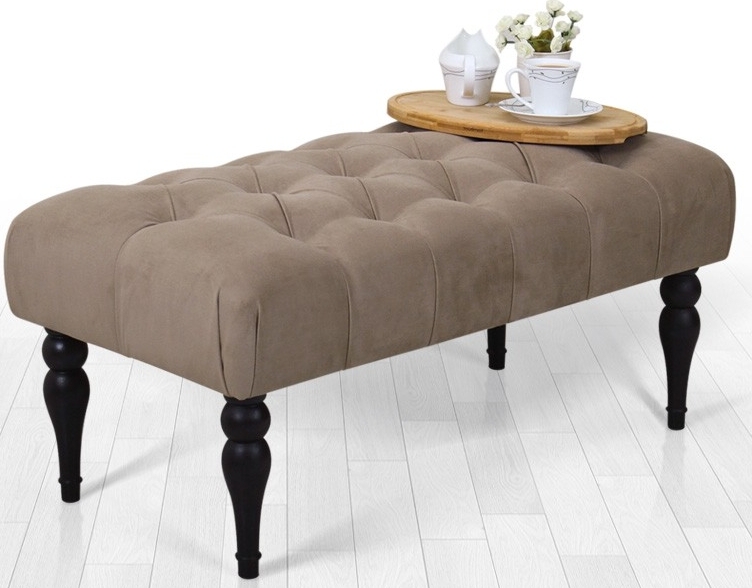 Puinen jakkara. Päällystetty puuvillalla ja sametilla. Pysäytysvaahto.