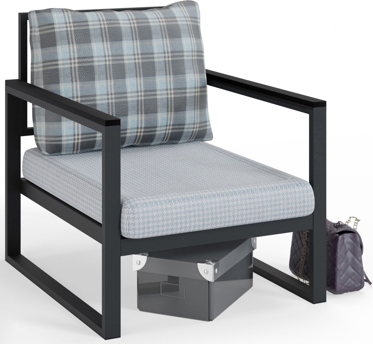 Metallista ja polyuretaanimuovista valmistettu nojatuoli. Päällystetty akryylikankaalla.