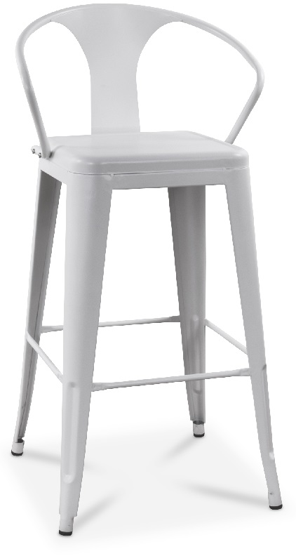 Montreux on upea ja tyylikäs teollisuustyylinen baarituoli valkolakatusta mattavärisestä pellistä.