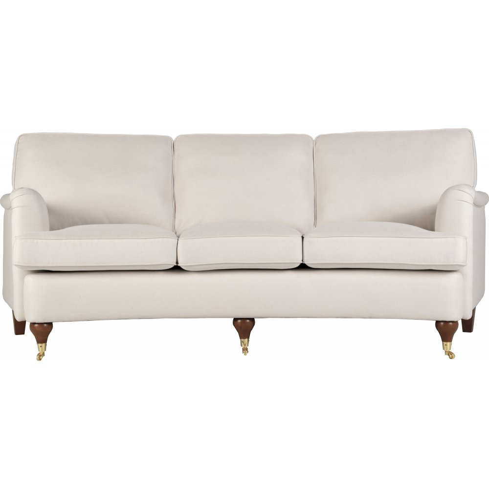 Sohvaa saa beigellä, tyylipuhtaalla verhoilulla ja sopii useimpiin koteihin.
