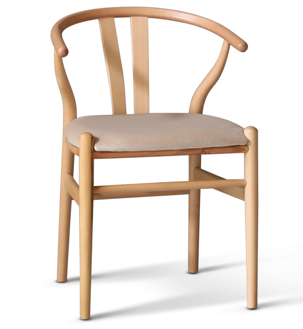 Nemo-nojatuoli luonnonvärisessä rungossa kiinteää lakattua pyökkiä ja beige samettityyny. Klassinen ruokatuoli, joka sopii myös moderneihin pöytiin.