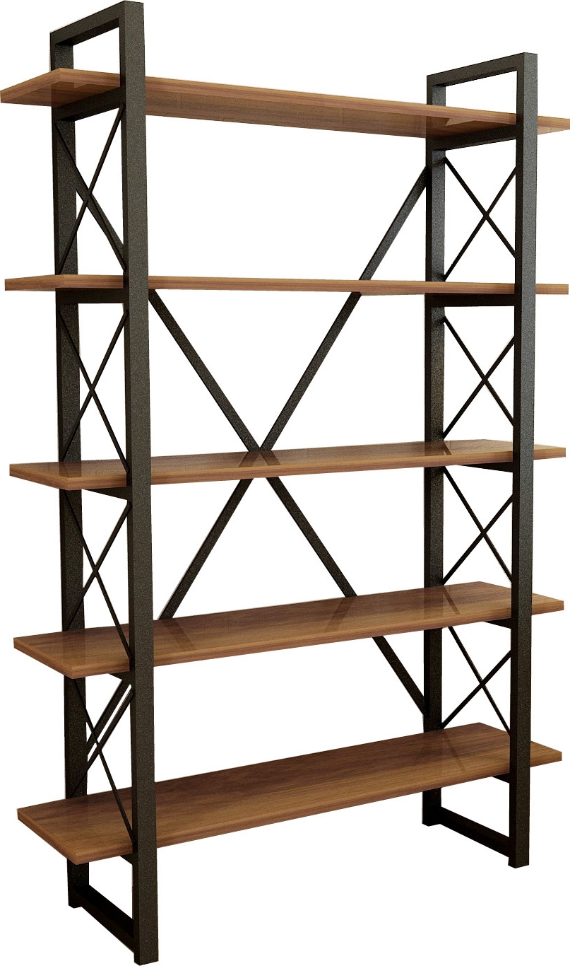 Kirjahylly pulverimaalattua metallia, hylly melamiinipinnoitettua lastulevyä.
