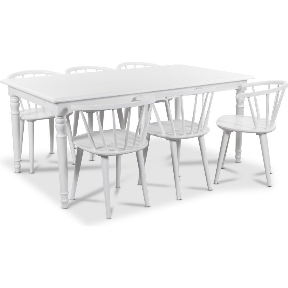 - Nomi-ruokailuryhmä, 180 cm ruokapöytä ja 6 kpl valkoista Fredrik-pinnatuolia