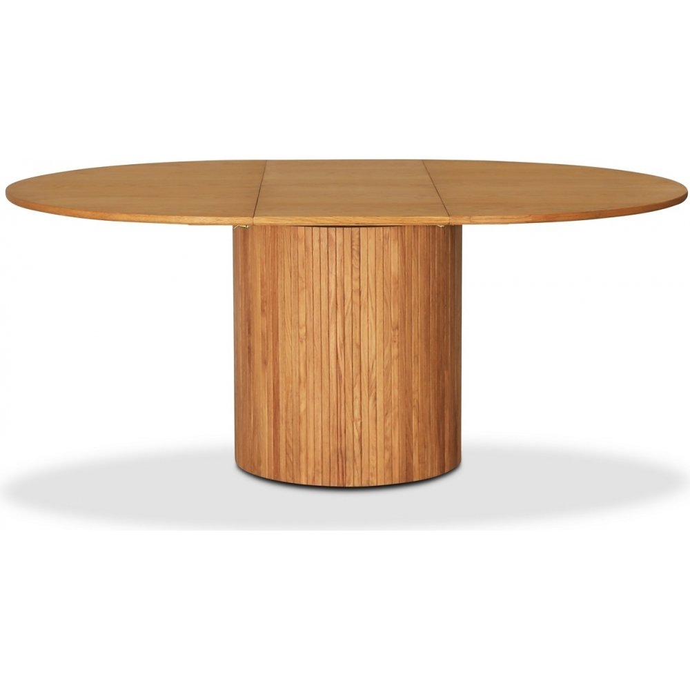 Ruokapöydän halkaisija on Ø130 cm, mukana tulee lisälauta, joka laajentaa pöydän 170 cm:iin. Sisäosa on taitettava ja säilytetty pöydän keskellä, kun sitä ei käytetä. Pöytä on rakennettu sekä massiivipuusta että vanerista.