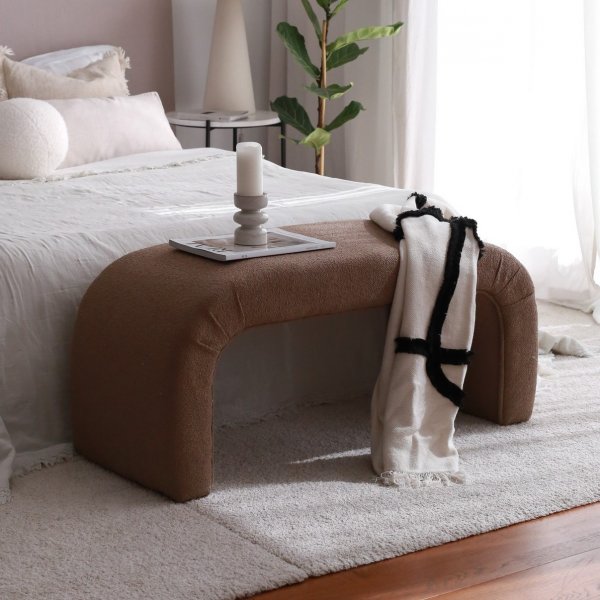 Pyökkipuusta valmistettu penkki polyesteriverhoilulla.